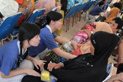 | Di RSKB Tzu Chi, sudah banyak kelihatan Tzu Ching lain yang berantusias untuk berpartisipasi dalam kegiatan ini. Jarak perjalanan dari RSKB Tzu Chi menuju ke panti jompo Tresna Werdha pun tidaklah jauh. Kunjungan kami disambut hangat dan ceria oleh opa oma yang berada disana. Keceriaan tersebut dapat terlihat jelas di raut muka mereka dengan cara mengucapkan “Halo…” sambil menjabatkan tangan mereka kepada kami semua satu persatu. Tzu Ching pun langsung membagi kelompok karena ruangan opa oma yang tinggal di panti jompo ini dinamakan dengan unik. Ruangan di panti jompo tersebut dibagi berdasarkan nama-nama pulau di Indonesia seperti Sumatera, Kalimantan, Sulawesi dan Papua. Kebetulan untuk ruangan yang bernama “Papua” terletak di paling belakang panti tersebut, Tzu ching pun bergegas membersihkan tempat tidur para oma dan opa, mereka juga tidak lupa untuk menggunting kuku oma dan opa, mengingat mereka yang sudah tua dan sulit untuk menggunting kuku mereka sendiri.