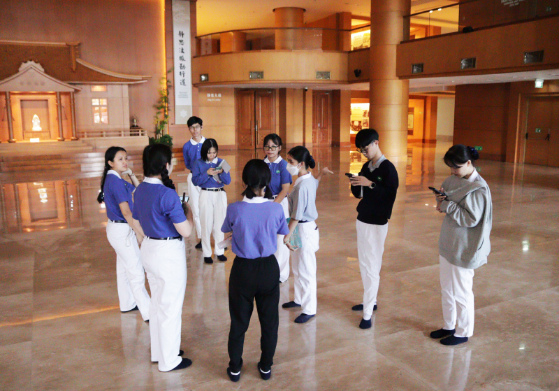 Panitia berdiskusi di ruang Exhibition Hall untuk menyiapkan Amazing Race, sebuah permainan seru yang akan mengajak peserta berkeliling Tzu Chi Center sambil menemukan makna di setiap pos.