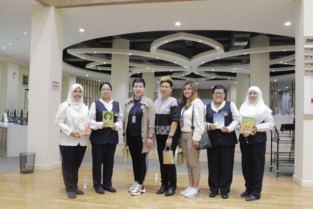 Yanti Hanafiah, General Manager Kinokuniya Indonesia (tengah) berfoto bersama pustakawati dari Sekolah Tzu Chi Indonesia dan Sekolah Cinta Kasih Tzu Chi Cengkareng.