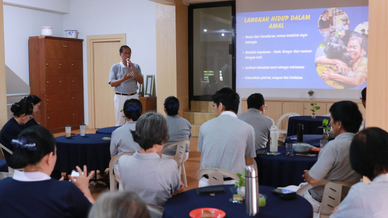 Dalam pemaparannya, FX Santoso mengajak para relawan merenungkan kembali makna kegiatan amal. “Amal bukan sekadar kegiatan, tapi jalan hidup,” ujarnya tegas. Ia menekankan bahwa amal sejati bukan hanya rutinitas membantu sesama, melainkan pelatihan batin yang menuntun pada perubahan diri. Ketika amal menjadi bagian dari napas kehidupan, setiap pikiran, ucapan, dan tindakan akan mengalir dalam kasih tanpa menunggu momentum tertentu.