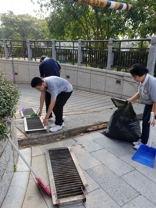 Setelah meditasi selesai, masing-masing relawan berpencar dengan mengambil sapu dan pengki. Mulai dari area tangga seribu sampai ke area taman mendekati pagar pembatas gedung, semua bergerak dengan penuh semangat untuk dapat kembali lagi berkumpul pada pukul 08:00 WIB.