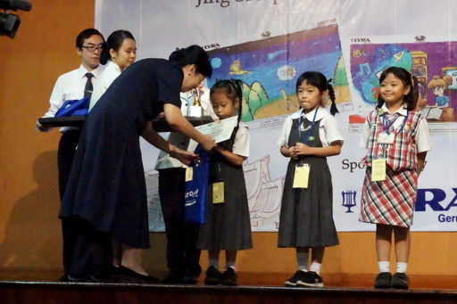 Para pemenang lomba menerima piala serta hadiah. Jing Si Aphorism Inter School Competition disponsori oleh Lyra, Mioko art school, serta Giotto.