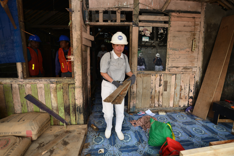 Dengan semangat gotong royong, relawan Tzu Chi komunitas He Qi Tangerang dan Barat 1 membongkar satu-persatu material rumah yang akan direnovasi Tzu Chi Indonesia.