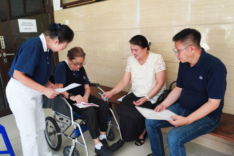 Mikeuh dan Deddy menyerahkan donasi atas nama mendiang Nyonya Lia melalui Tzu Chi. Donasi ini merupakan bentuk penyelesaian amanah pinjaman biaya pengobatan masa lalu yang dialihkan menjadi amal.