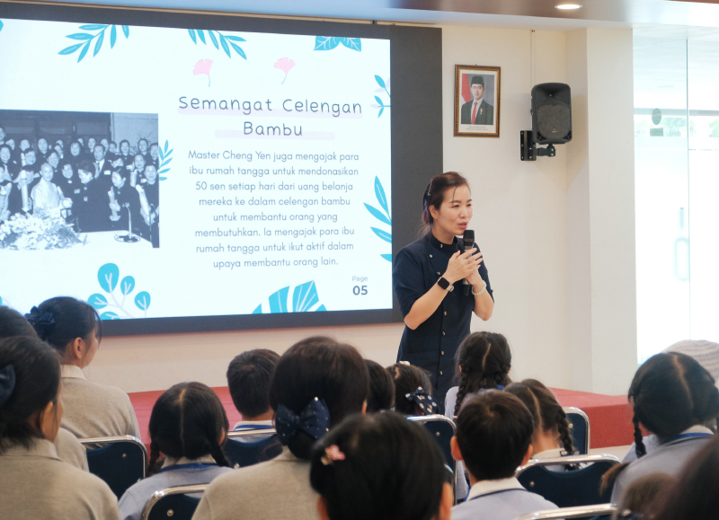 Bertepatan dengan bulan April dalam rangka menyambut Hari Kartini, Kelas Budi Pekerti kali ini mengangkat tema “Perempuan Hebat”. Dalam penyampaian materinya, Renawati Natalia selaku Koordinator Misi Pendidikan membagikan kisah tentang Semangat Celengan Bambu yang digagas oleh Master Cheng Yen bersama 30 ibu rumah tangga, yang kemudian menjadi awal mula berdirinya Tzu Chi. Kisah ini menjadi gambaran nyata tentang kegigihan dan ketulusan perempuan hebat pada masa itu dalam menebarkan kebaikan.