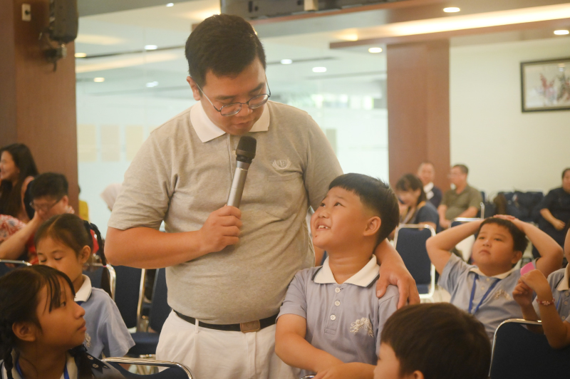 Dalam sesi interaktif, para orang tua dengan penuh semangat menjawab pertanyaan seputar keseharian dan karakter anak mereka.