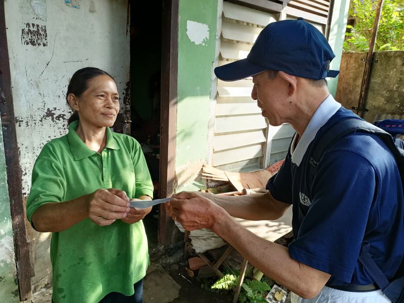 Sebelum pembagian paket, relawan Tzu Chi Pekanbaru juga membagikan kupon terlebih dahulu secara door to door ke rumah-rumah warga yang membutuhkan.