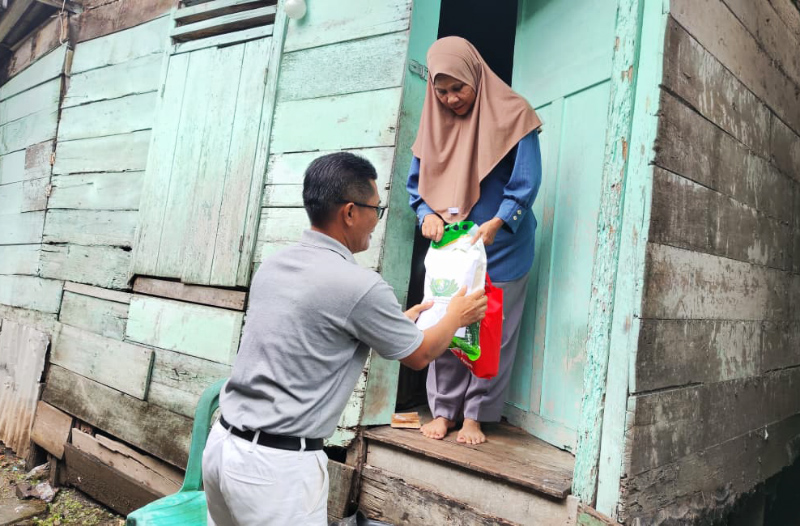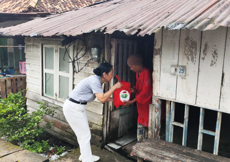 Dengan penuh rasa hormat, relawan mengantarkan langsung paket sembako ke rumah para lansia.