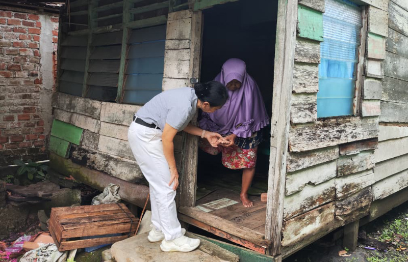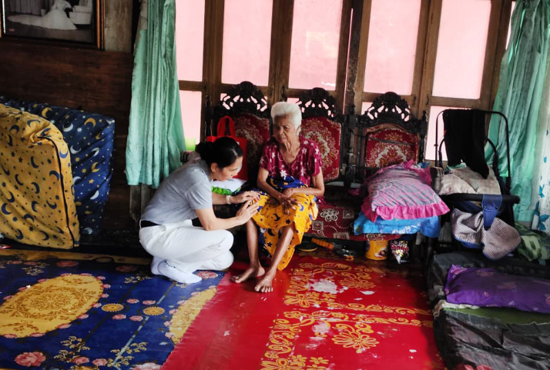 Ratna Dewi Tjandiagung mengunjungi rumah salahsatu lansia yang sudah sulit berjalan.