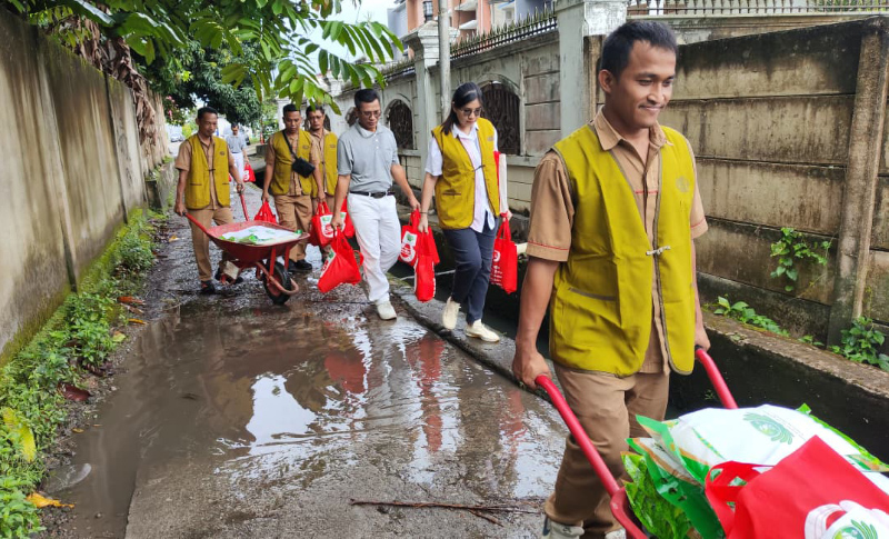Ada 23 paket sembako yang tiap paket berisi beras, gula, terigu, dan minyak goreng yang diangkut menggunakan kereta dorong untuk memudahkan distribusi dari rumah ke rumah. Pemberian paket sembako ini didampingi oleh ketua RT setempat agar bantuan tersalurkan tepat sasaran.