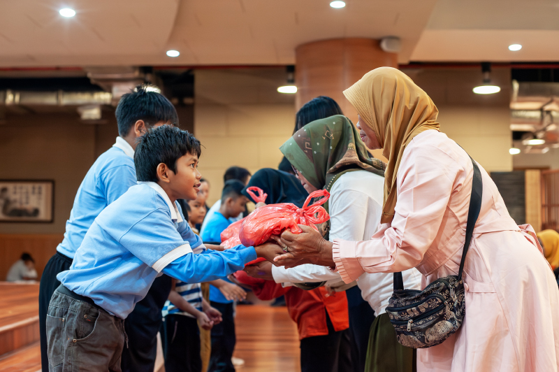 Acara dihadiri oleh delapan keluarga penerima bantuan khusus, 85 peserta Kelas Budi Pekerti yang terdiri dari anak-anak dan para ibu, serta sekitar seratus relawan. Kegiatan dibuka dengan prosesi penuangan celengan beras oleh anak-anak Kelas Budi Pekerti. Dengan langkah rapi dan wajah penuh kesungguhan, mereka menuangkan beras yang dikumpulkan dari rumah masing-masing. Sebuah simbol kecil namun sarat makna, tentang kebiasaan berbagi yang ditanamkan sejak dini.