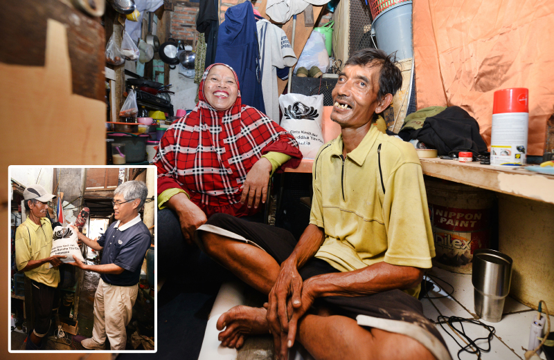 Kebahagiaan Nisan dan Suci Haryanti setelah dikunjungi relawan Tzu Chi dan mendapatkan bantuan beras untuk kebutuhan keluarga.
