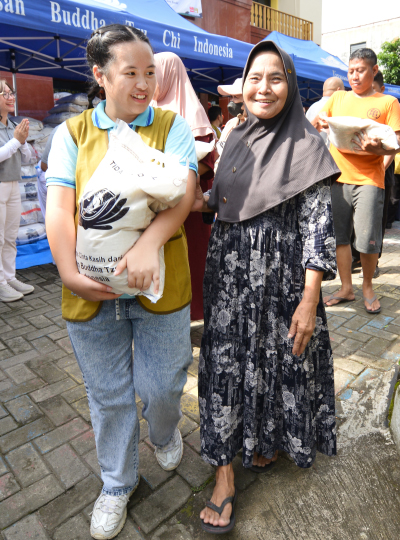Karena kesulitan membawa bantuan beras dari Tzu Chi, Hartini juga dibantu oleh anak-anak asuh Tzu Chi komunitas He Qi Jakarta Barat 1. “Banyak-banyak terima kasih sama Buddha Tzu Chi karena masih mau menolong orang yang membutuhkan,” pungkasnya.