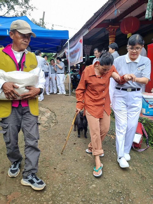 Para warga yang kesulitan membawa Paket Cinta Kasih Imlek juga dibantu oleh para relawan dan sukarelawan Tzu Chi.