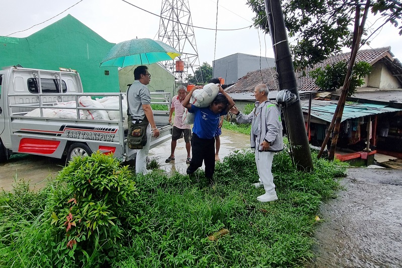 Walaupun kondisi cuaca tidak menentu, relawan tetap bersemangat mengantarkan beras Paket Cinta Kasih Imlek ke Cetiya Hoa An Tang di Citeureup, Bogor.