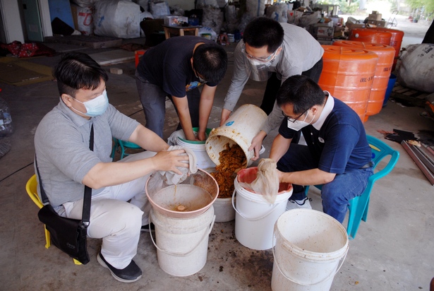Hari ini, Jumat 9 April 2021, delapan relawan He Qi Utara 1 memanen dua toren eco enzyme di Depo Pelestarian Lingkungan PIK, Jakarta Utara. Toren berkapasitas 300 liter tersebut masing-masing terisi 60 persen-nya, sehingga hasil panen satu toren terhitung sekitar 180 liter cairan eco enzyme.