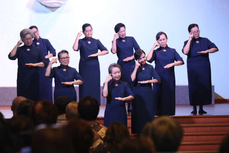 Relawan Komite Tzu Chi membawakan penampilan Isyarat Tangan lagu Mo Wang yang bermakna “Jangan lupakan masa itu, Jangan lupakan orang itu, Jangan lupakan niat itu”.