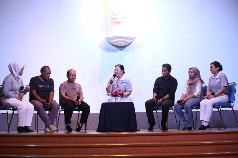 Pada kesempatan ini juga ada sesi sharing dari penerima manfaat program Bebenah Ka,pung Renovsi 5.000 Rumah tidak Layak Huni dengan dimoderatori oleh relawan Tzu Chi, Laura Indrayani (tengah).