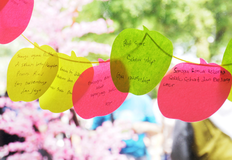 Para peserta Pemberkahan Akhir Tahun menuliskan harapan dan doa di secarik kertas.