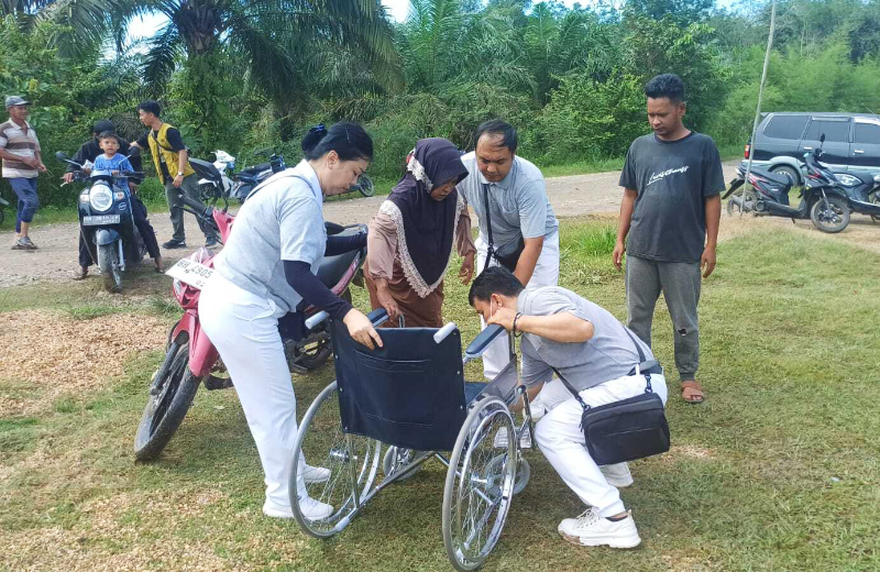 Bagi warga yang kesulitan berjalan, relawan Tzu Chi Jambi juga membantu dengan menyediakan kursi roda saat melakukan pemeriksaan kesehatan.