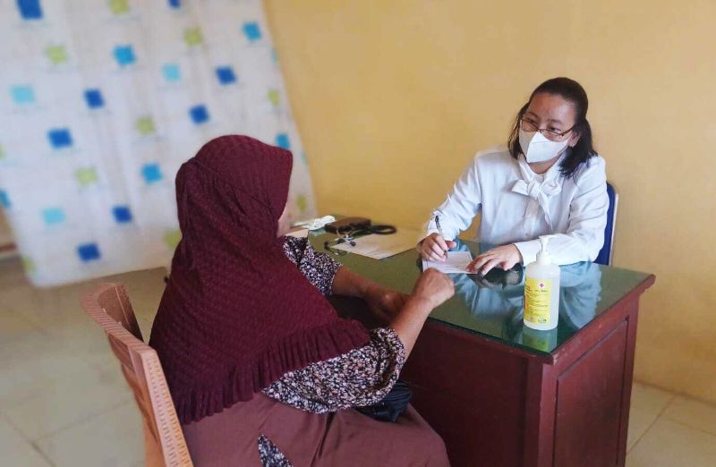 Salah satu warga Desa Danau Lamo berkonsultasi dengan dokter tentang keluhan kesehatannya.