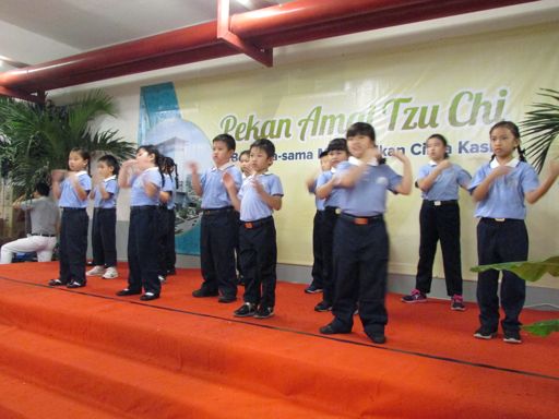 Anak-anak kelas budi pekerti He Qi Timur juga memeriahkan acara dengan menampilkan bahasa isyarat tangan.