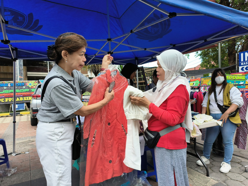 Dhani, penjual buah di area Car Free Day, merasa senang memperoleh 15 potong pakaian dengan harga murah dan berharap kegiatan serupa ke depan juga menghadirkan Pekan Amal sembako bagi masyarakat.
