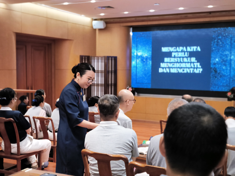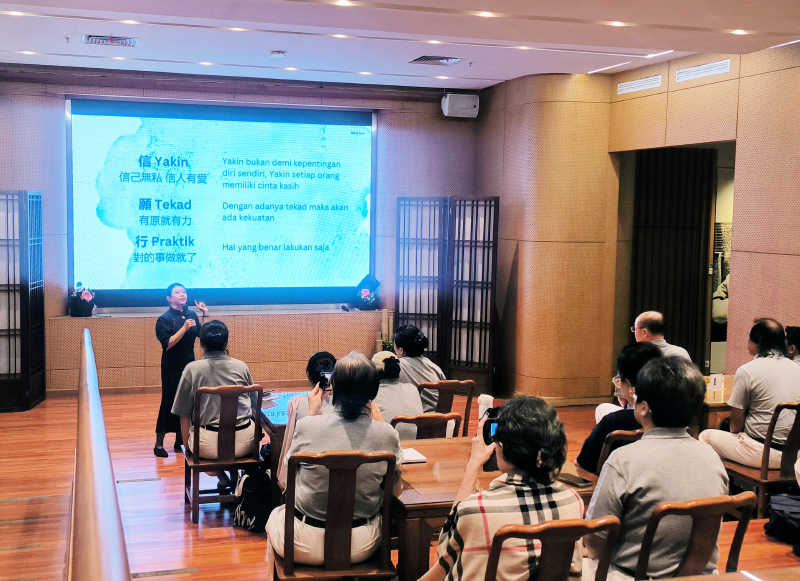 Di balik proses training, peran panitia menjadi bagian yang tak terpisahkan dalam memdampingi para relawan baru memahami nilai dan arah perjalanan Tzu Chi. Martha Khosyahri, relawan Tzu Chi yang menjadi panitia dan pendamping tim pelatihan, sekaligus menyampaikan salah satu materi bertajuk “Menghimpun Kebajikan dari Tetesan Cinta Kasih”. Menurut Martha, seluruh rangkaian materi training merupakan satu kesatuan yang mengisahkan tentang kekuatan tekad yang dijaga secara konsisten, mulai dari keteladanan Master hingga praktik kebajikan dalam kehidupan sehari-hari.