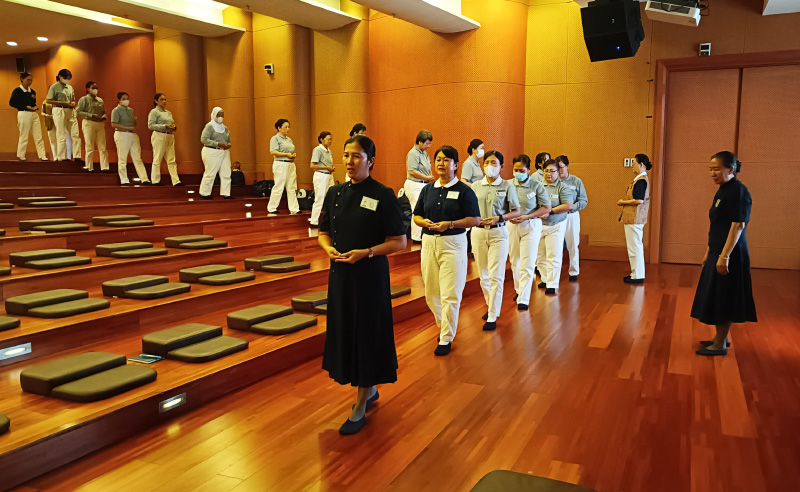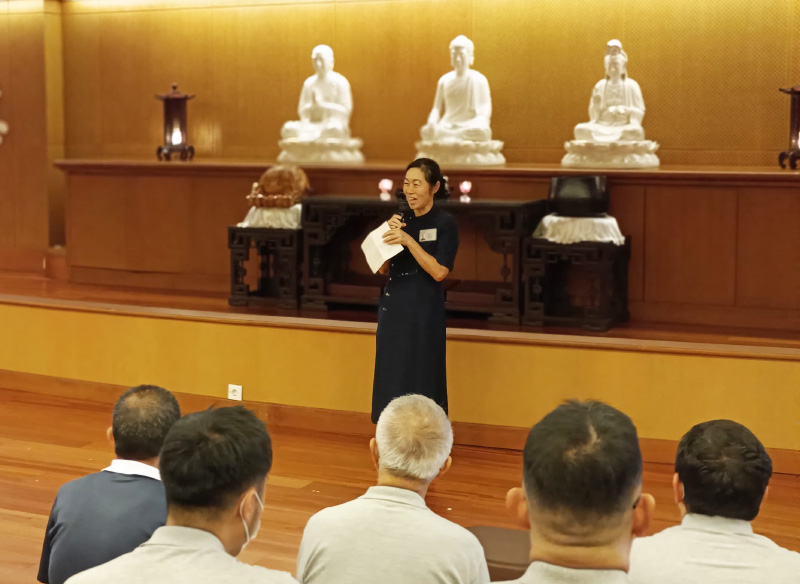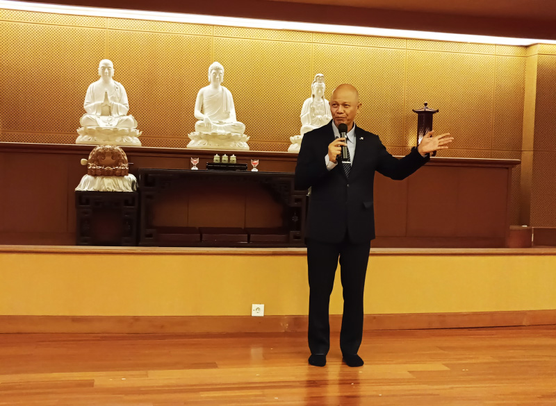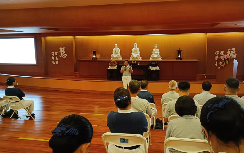 Sesi pertama materi dibawakan oleh Lie Fa Lie dengan materi Pradaksina—sebuah metode meditasi berjalan yang mengajarkan fokus, kesadaran, dan ketenangan batin. Ia pun menjelaskan bahwa pelatihan diri di Tzu Chi dilakukan di tengah masyarakat, bukan di tempat terpencil. Karena itu, ketenangan batin sangat diperlukan agar para relawan mampu menghadapi situasi tak terduga dengan bijaksana, penuh empati, dan tidak tergesa dalam mengambil keputusan.