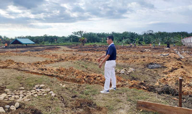 Relawan TTD Tzu Chi, Timmy Jawira saat meninjau langsung lahan pembangunan hunian tetap di Pinangsori, Tapanuli Tengah. Peninjauan ini dilakukan untuk memastikan lokasi hunian aman dari risiko banjir dan memiliki akses yang memudahkan mobilitas warga.