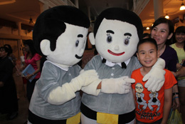 Kegiatan malam itu dilanjutkan dengan peragaan Isyarat tangan “Kai Jing Ji, Xu qu, De Heng Ping dan Shang Ren Zhu Fu”. Lemah gemulai tangan-tangan dari insan Tzu Chi Tanjung Balai Karimun mengajak tamu undangan untuk ikut mendalami sutra-sutra Buddha. Lewat gerakan tangan ini mereka mengajak semua yang hadir mempelajari sutra yang telah diajarkan Buddha. Tak sia-sia para Boddhisatwa peragaan isyarat tangan belajar kurang lebih tiga bulan untuk mempersiapkan kegiatan ini. “Saya sempat merasa khawatir dengan peragaan isyarat tangan ini karena sampai pada gladi bersih isyarat tangan masih belum kompak. Tetapi pada malam hari ini kekhawatiran itu tergantikan dengan rasa puas dan bangga dengan penampilan para Boddhisatwa peragaan isyarat tangan. Mereka tampil dengan luar biasa. Gan En semua,” kata Sukmawati Shijie selaku ketua Tzu Chi Kantor penghubung Tanjung Balai Karimun. Mieli Shijie, koordinator kegiatan pemberkahan akhir tahun 2014 merasa bahagia dan terharu dengan suksesnya kegiatan pada malam itu. Baik keseluruhan acara maupun tamu undangan yang hadir juga mengalami peningkatan yang lebih baik. Peningkatan acara tahun ini dapat dijadikan modal untuk menjalankan misi Tzu Chi selama tahun 2014. “Kegiatan malam ini jauh lebih baik daripada tahun yang lalu, baik jumlah peserta yang hadir maupun acara yang telah kita lakukan. Persiapan yang telah matang dapat membuat acara berjalan sukses. Apalagi dengan keberadaan mascot Tzu Chi yang dapat menjadi magnet baru bagi tamu undangan yang hadir,” kata Mieli Shijie.  Keterangan : - Mascot Tzu Chi menjadi salah satu magnet bagi para tamu undangan yang hadir (kiri).