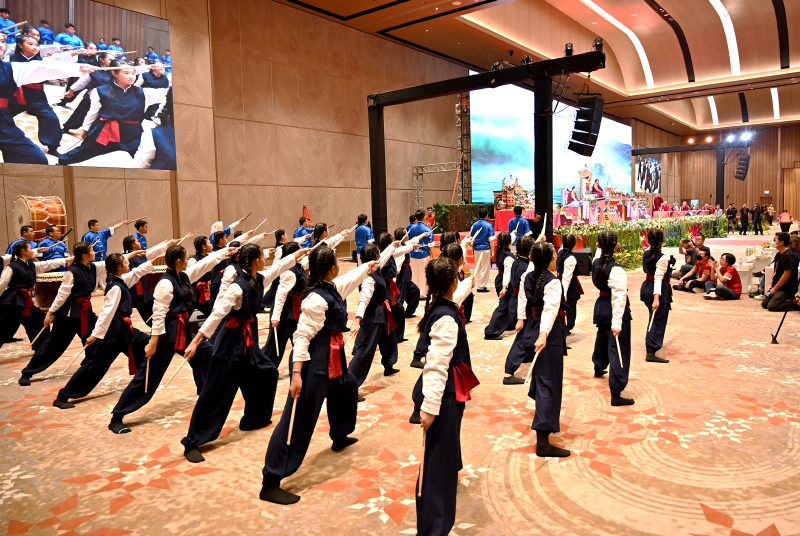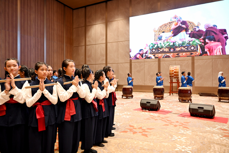 Menariknya, rangkaian acara tidak hanya diisi dengan sesi spiritual dan kebijaksanaan, tetapi juga diperkaya dengan pertunjukan seni yang sarat makna. Salah satu yang menjadi sorotan adalah penampilan Tabuh Genderang yang dibawakan oleh 50 murid Sekolah Cinta Kasih Tzu Chi Cengkareng.