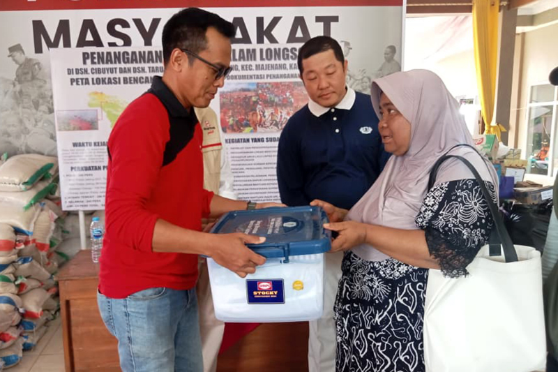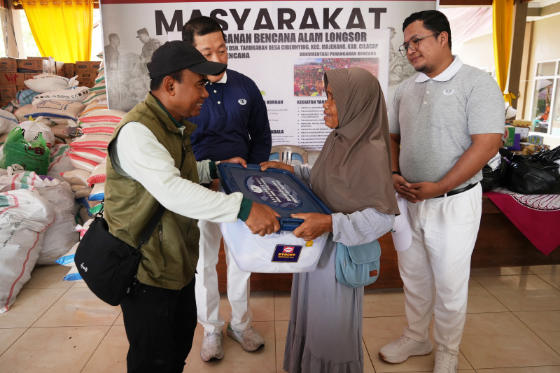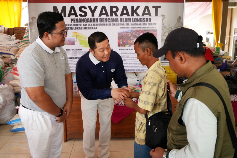 Muhammad Faishal, Ketua Paguyuban Sinar Mas Purwokerto, didampingi para relawan menyerahkan bantuan secara langsung kepada warga terdampak longsor, sebagai bentuk dukungan agar mereka dapat kembali bangkit di tengah situasi sulit.