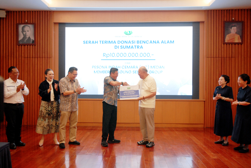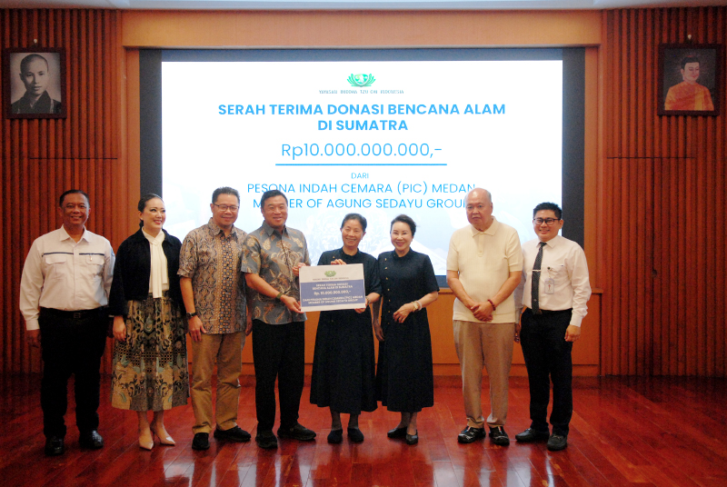 Richard Halim Kusuma, CEO Agung Sedayu Group sekaligus pimpinan Pesona Indah Cemara Medan bersama jajaran secara resmi memberikan donasi sebesar Rp 10 Miliar kepada Liu Su Mei, Ketua Yayasan Buddha Tzu Chi Indonesia, untuk mendukung pembangunan hunian tetap bagi korban bencana di Sumatera.