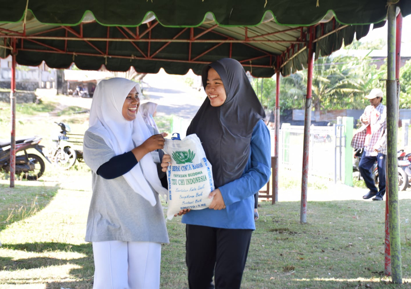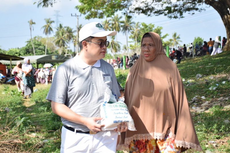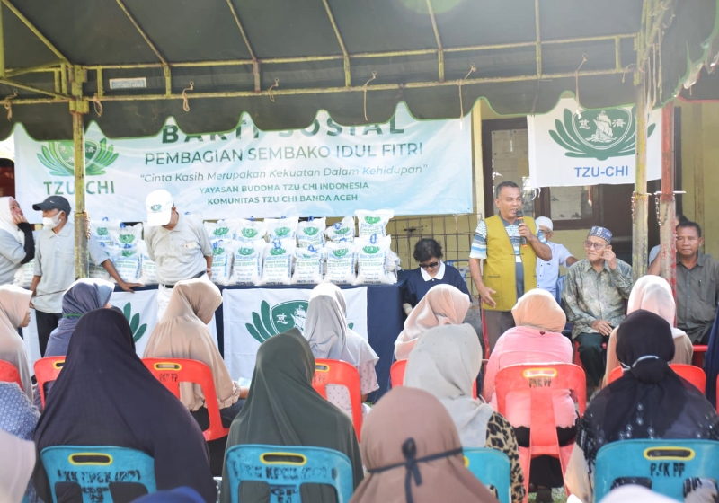 Sebanyak 500 sak beras atau setara dengan 2,5 ton beras disalurkan kepada warga dalam kegiatan bakti sosial yang digelar pada Minggu, 8 Maret 2026, di Perumahan Cinta Kasih Tzu Chi, Neuheun, Aceh Besar. Kegiatan ini dilaksanakan dalam rangka memperingati Hari Raya Idulfitri guna menghadirkan kehangatan kebersamaan antara relawan dan warga.