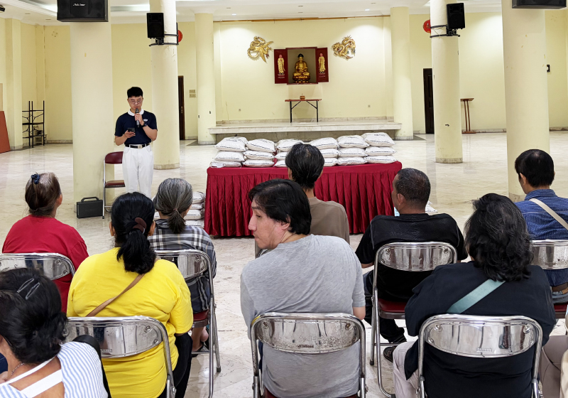 Sejak pagi hari, relawan bergotong royong melakukan persiapan, mereka menata meja dan bangku di aula serbaguna wihara, serta mengangkut beras dari mobil menuju lokasi kegiatan. Suasana gotong royong terasa hangat, mencerminkan semangat kebersamaan yang menjadi ciri khas setiap kegiatan kemanusiaan Tzu Chi.