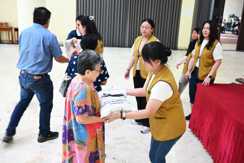 Relawan Xie Li Kemanggisan Salurkan Paket Beras di Wihara Avalokita