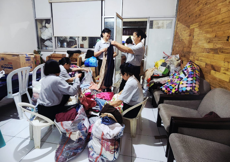 Dalam kegiatan Pemilahan Sampah Pelestarian Lingkungan pada 28 Januari 2026 di Depo Pendidikan Pelestarian Lingkungan Xie Li Bogor, relawan memilah pakaian layak pakai dari donatur untuk didonasikan kepada Gan En Hu (anak asuh Tzu Chi).