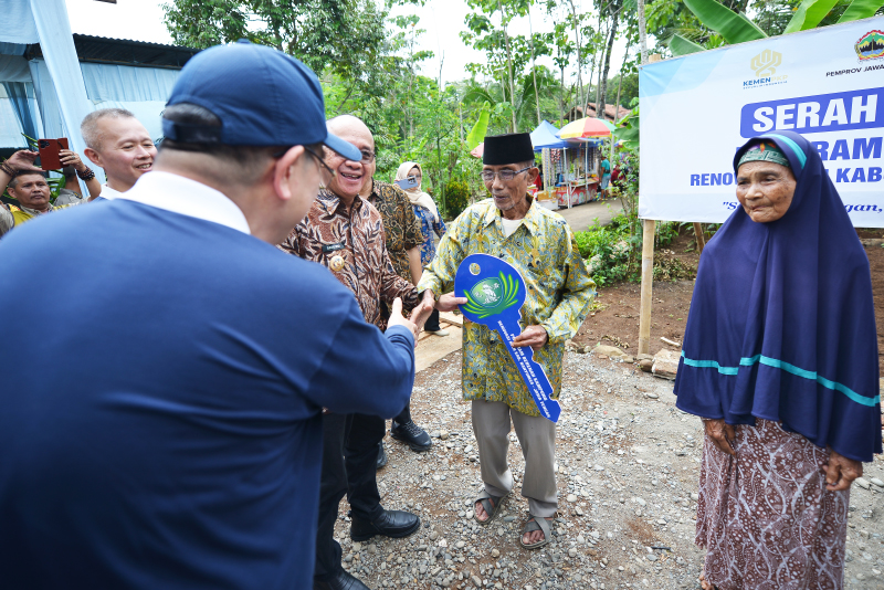 Miswan saat menerima simbolis kunci saat acara serah terima kunci renovasi rumah di Desa Somakaton, Banyumas.