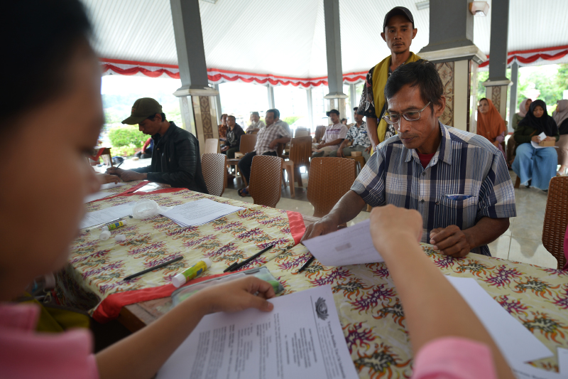 Staf Yayasan Buddha Tzu Chi Indonesia memandu warga dalam proses penandatanganan SKB.