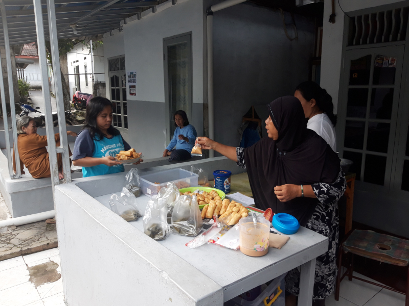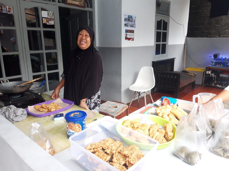 Ibu Juriah bersama Ami anak perempuannya ikut membantu berjualan gorengan untuk panganan berbuka puasa. Ibu Juriah sangat senang teras rumahnnya kini lebih bersih dan nyaman untuk berjualan.