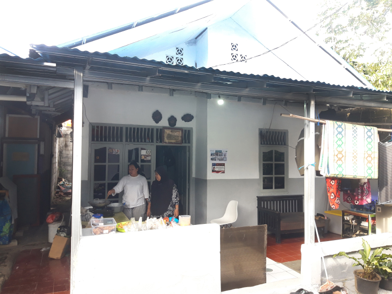 Ibu Juriah dengan ramah malayani pembeli yang rata-rata dari para tetangga rumahnya. Ibu Juriah berjualan nasi uduk dan makanan lainnya di teras rumahnya yang sudah selesai di renovasi.