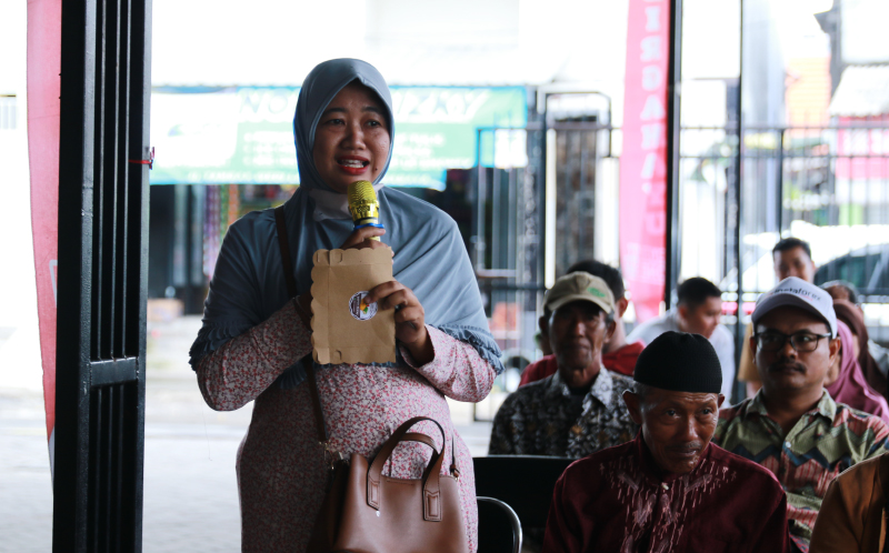 Ike Maulani Utami salah satu calon penerima bantuan yang juga turut bertanya dengan antusias kepada relawan saat sesi tanya jawab.