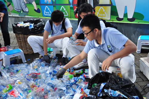Murid-murid Tzu Shao bersemangat mengikuti kegiatan daur ulang ini