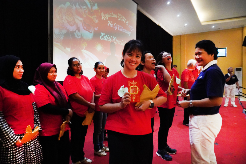 “Para orang tua bersukacita dan melupakan kesulitan di rumahnya, dengan berkumpul begini. Meski acaranya sederhana tapi kan salah satu obat yang mujarab adalah hati yang bahagia,” kata Denasari, Ketua Misi Amal He Qi Cikarang.