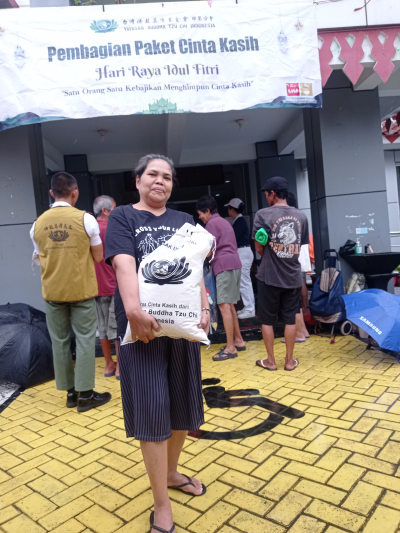 Jelang Idul Fitri, Yayasan Buddha Tzu Chi Indonesia mengadakan pembagian 500 Paket Cinta Kasih Lebaran berupa beras berukuran 10 kg di Kantor Kelurahan Glodok, Jakarta Barat.