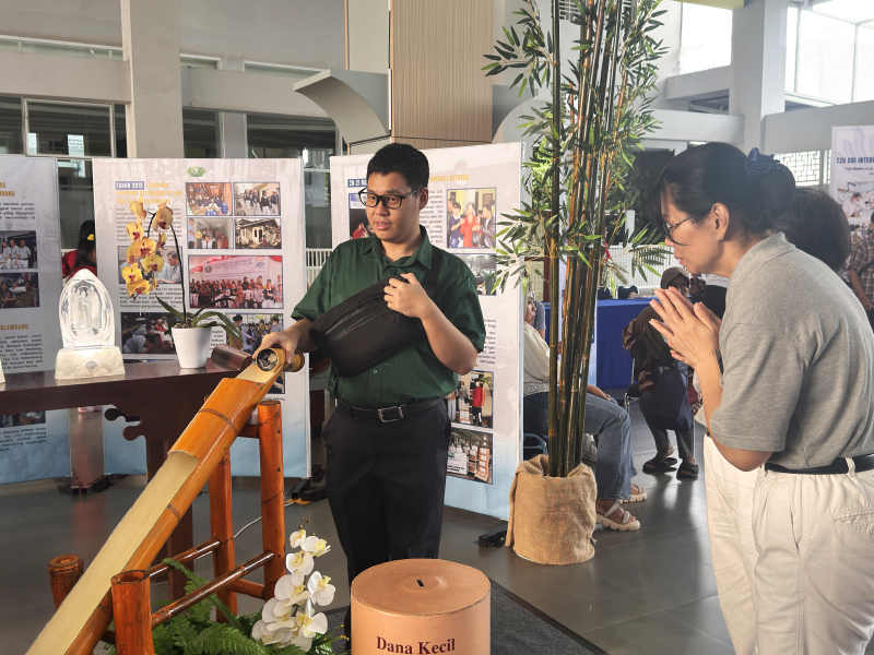 Berbeda dari tahun-tahun sebelumnya, Pemberkahan Akhir Tahun 2025 turut dilengkapi dengan kehadiran Stand Misi Tzu Chi yang memperkenalkan berbagai kegiatan dan membuka kesempatan bagi tamu untuk bergabung sebagai relawan.