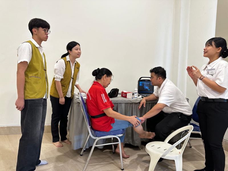 Dokter Radi melakukan pengecekan USG kaki kepada warga yang datang sebagai bagian dari pemeriksaan untuk mendeteksi kondisi pembuluh darah, termasuk kemungkinan adanya varises.