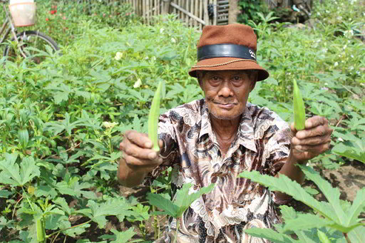 M. Irsyad menunjukkan buah Okra dari hasil berkebun di lahan milik tetangganya yang selama ini menjadi tumpuan hidupnya.