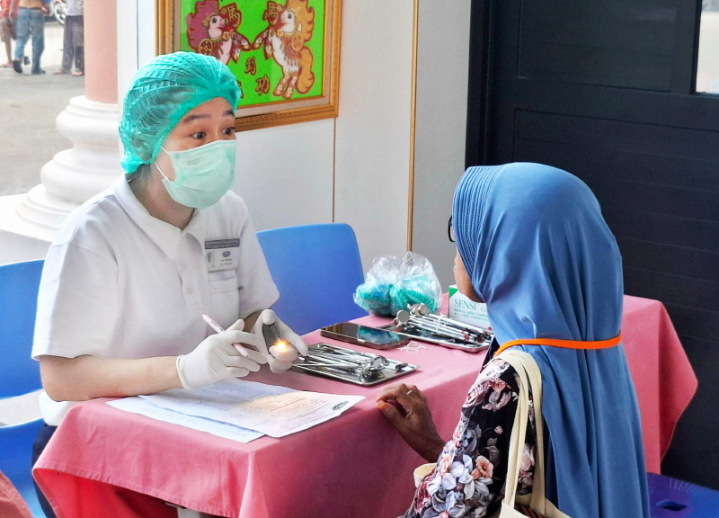 Usai dari ruang laboratorium, pasien diarahkan menuju pemeriksaan gigi. Dengan pendekatan yang ramah dan menenangkan, dokter gigi melayani para lansia satu per satu, memberikan pemeriksaan serta edukasi ringan mengenai kesehatan gigi dan mulut.